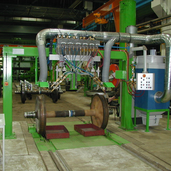 Sprengringausbrennstand - DB Regio AG, Werk Delitzsch Auftraggeber: Deutsche Bahn AG Leistungen: Konstruktion, Fertigung, Lieferung und Inbetriebnahme für Halbautomatische Arbeitsstation zum Ausbrennen von Sprengringen aus bereiften Radsätzen.